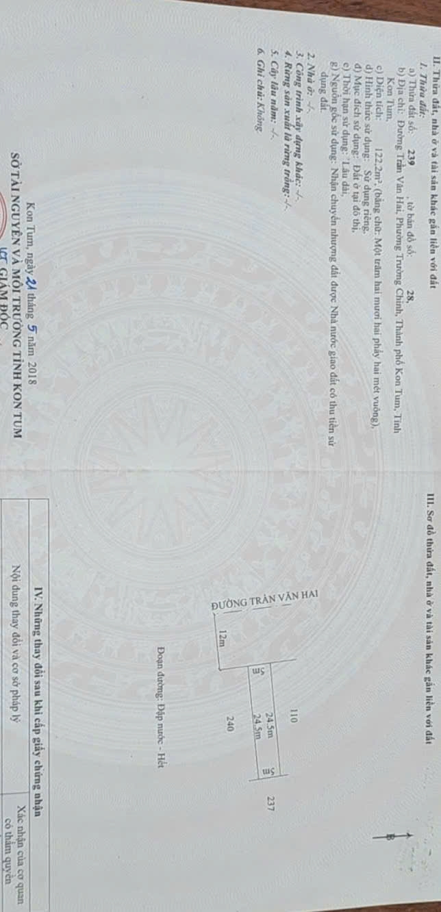 Bán đất đường Trần Văn Hai, P. Trường Chinh, Tp. Kon Tum