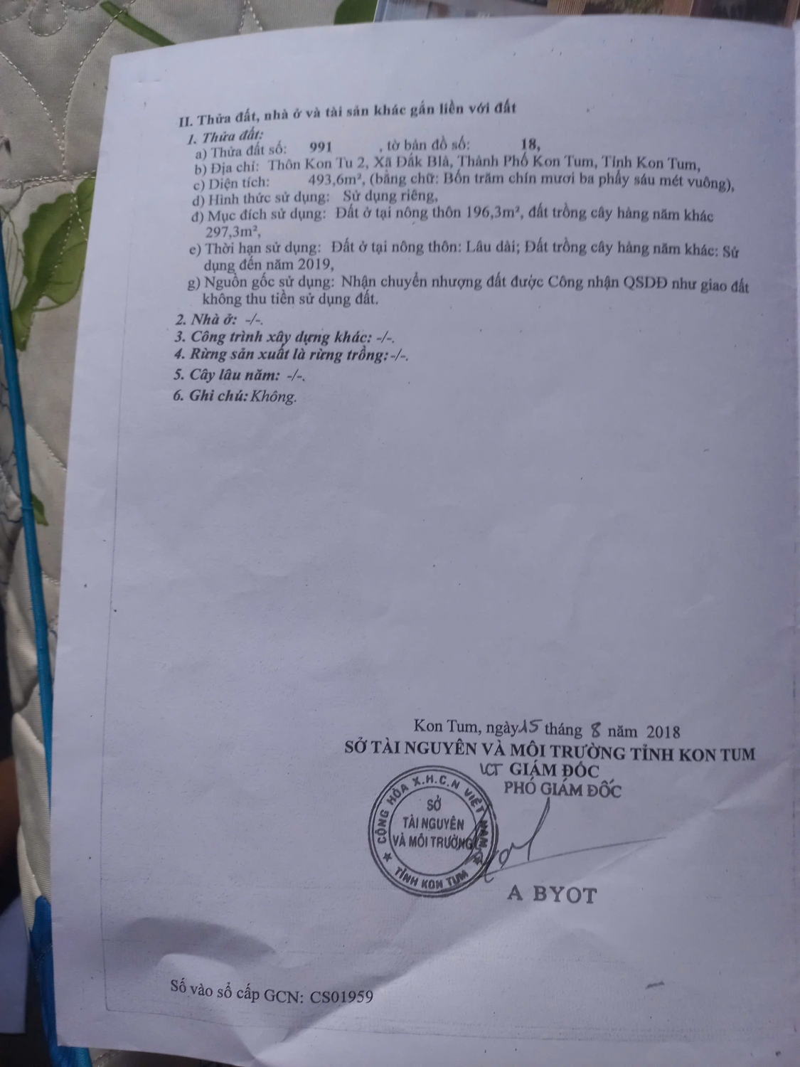 Bán đất Thôn Kon Tu 2, P. Đăk Blà. T. Quảng Ngãi