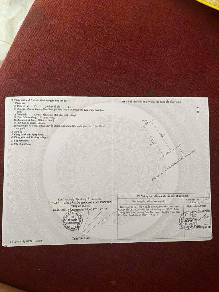 Bán nhà đất đường Trương Hán Siêu, phường Duy Tân, TP Kon Tum.