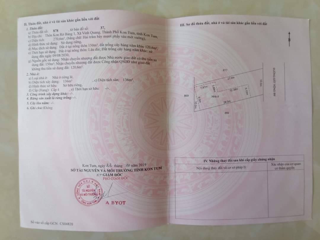Bán nhà Thôn Kon Rơ Bàng 1, Xã Vinh Quang, TP. Kon Tum